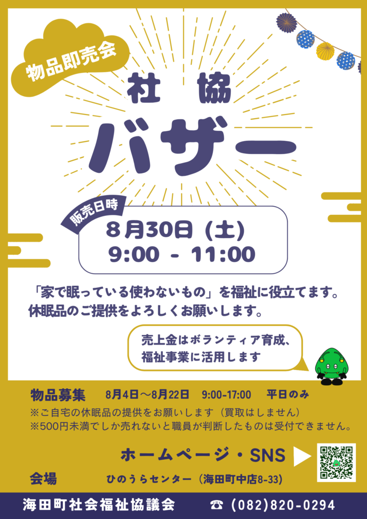 【問い合わせ】海田町社会福祉協議会 082-820-0294
