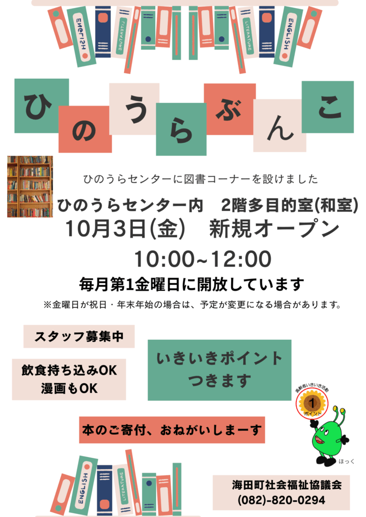 ひのうらセンターに図書コーナーが開設されます!
